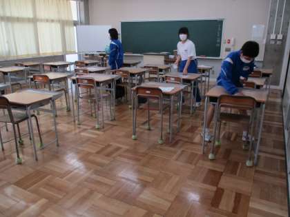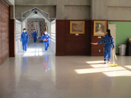 4月15日(月) たてわり班清掃 公開日 2024/04/16 更新日 2024/04/16 できごと 鬼石中学校では,学年問わずたてわり班で清掃しています。先週は学年毎に各フロアーを清掃していましたが,今週からは各学年1,2人ずつ4,5人の班で校内のいろいろな場所をローテーションで清掃していきます。初日の今日は,3年生が指示を出し,班で協力して清掃に取り組んでいました。