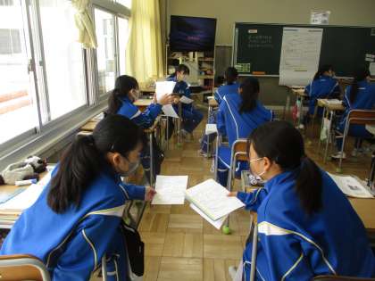 4月19日(金) 3年生(社会)「アジアの民族自決と国際協調」 公開日 2024/04/23 更新日 2024/04/23 できごと 3年生の社会は第1次大戦後のアジア諸国の動きについての学習でした。第1次大戦後の民族自決運動によるアジア諸国の主権回復と、それに伴う列強との力のバランスの変化について映像や資料をもとにして考えました。 授業 3年