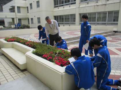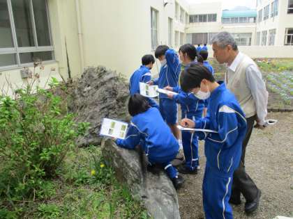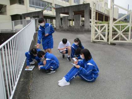 4月16日(火) 1年生(理科)「校庭周辺の生物の観察」 公開日 2024/04/23 更新日 2024/04/23 できごと 校庭や体育館周辺,中庭などを歩いて,生物おもに植物の観察をしました。教科書の写真を参考に,生育環境やおよその高さなどその植物の特徴を記録していきました。春真っ盛り,たくさんの種類の植物を見つけることができました。