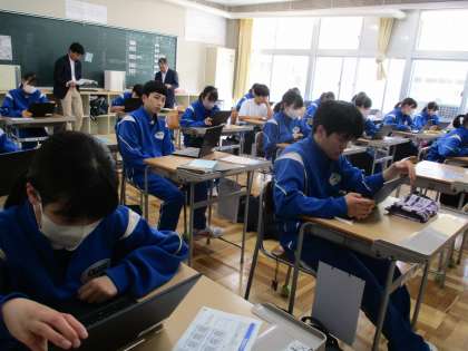 4月16日(火) 3年生 全国学力・学習状況調査 生徒質問紙 公開日 2024/04/23 更新日 2024/04/23 できごと 自立学習の時間,全国学力・学習状況調査の生徒質問紙に取り組みました。一人一人タブレットPCを使い、生活の様子や学習への取組などの質問に回答しました。これまでに同じような形の回答を経験しているため,みんなスムーズにできました。