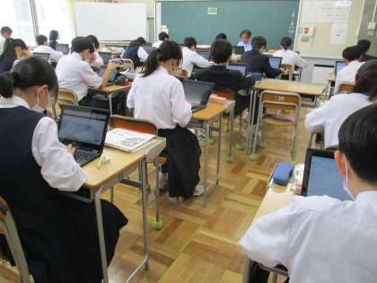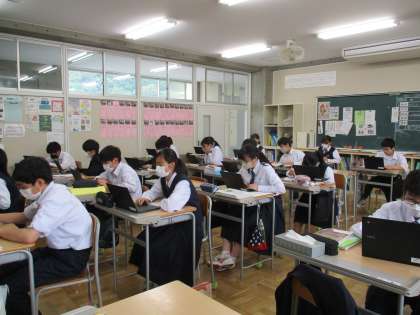 5月1日(水) 2年生(国語)「少年の主張」 公開日 2024/05/07 更新日 2024/05/07 できごと 2年生は「少年の主張」に取り組んでいます。各自,主張したいことが決まり,つくったメモをもとに,タブレットを使って文を書き(打ち)始めました。みんな集中して取り組んでいます。