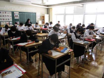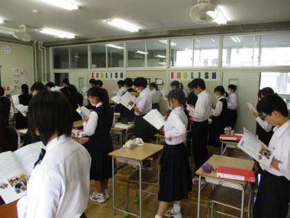 5月9日(木)2年生(英語)「Read&Think"A True Hero"」 公開日 2024/05/09 更新日 2024/05/09 できごと 英文を読みその内容について考える学習でした。主人公がアンパンマンにまつわる記事を読んで、作者やなせたかしさんの考えるヒーロー像について、英文を通して理解しました。 授業 2年