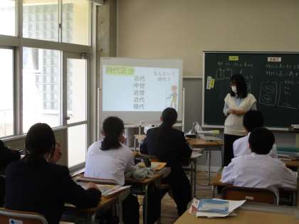 5月15日(水) 1年生(社会)「減法の規則」 公開日 2024/05/15 更新日 2024/05/15 できごと 1年生の社会は、西暦、世紀、元号を結びつけて時代を考える学習でした。問題を解きながら、世界や日本の時間軸を合わせて時代を捉える面白さを実感していました。 授業 1年