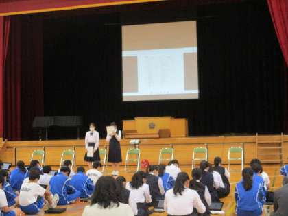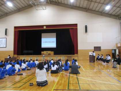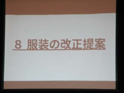 5月16日(木) 生徒総会3 公開日 2024/05/16 更新日 2024/05/16 できごと 予算案の説明後、生徒会長から服装に係る校則改正の提案がありました。生徒会長からは、改正にあたって、「自己管理による責任ある行動を」全生徒に求めると共に、「適切な判断」で制服を着用してほしいと、呼びかけがありました。拍手をもって、提案が承認されました。