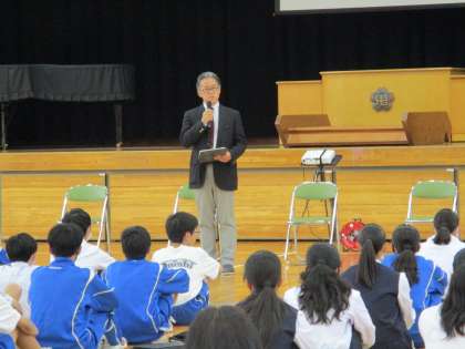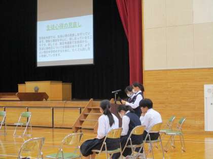5月16日(木) 生徒総会4 公開日 2024/05/16 更新日 2024/05/16 できごと 最後に校長から、総会の感想と今後への期待を伝えました。一人一人が鬼石中生としての自覚と責任を持ち、改正後の校則をしっかり守り、鬼石中を更に成長させてほしいと願っています。今日の10文字キーワードは「責任を持って行動する」です。生徒の皆さん、忘れないでくださいね! 学校生活
