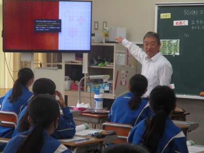 5月23日(木) 3年生(数学)「平方根」 公開日 2024/05/24 更新日 2024/05/24 できごと 3年生の数学は平方根の学習でした。正方形の面積から1辺の長さを知ることができるか、という切り口で学習をスタートしました。 授業 3年