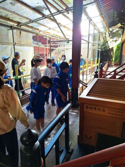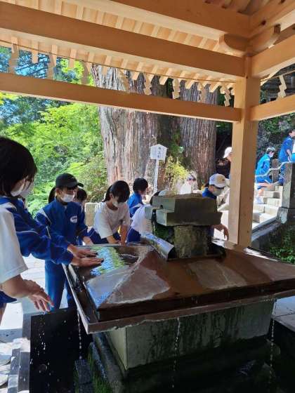 御水屋で清めてから参拝します。二礼二拍手一礼で。