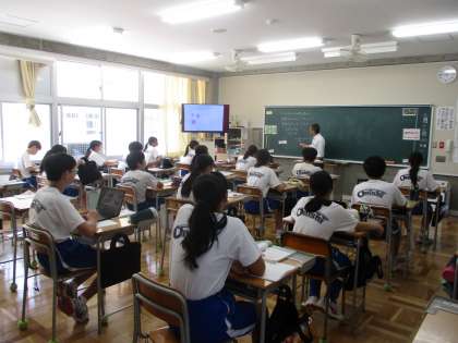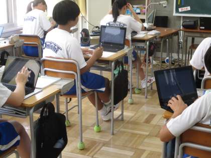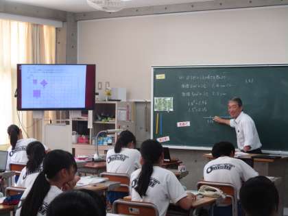 3年生の数学は平方根の学習でした。今日は1台端末も活用して正方形の一辺の長さを考えました。
