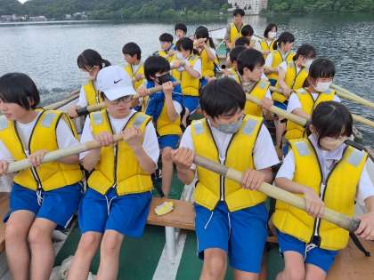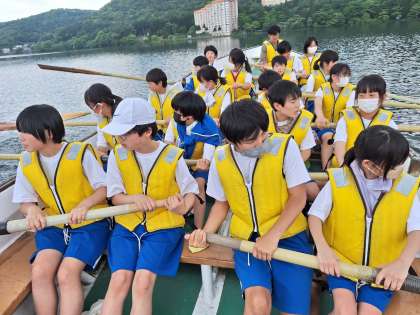 5月24日(金) 1年生 カッター実習 上達しています 公開日 2024/05/24 更新日 2024/05/24 1年高原学校 カッターの漕ぎ方が上達して、息が合うようになって、どんどん進むようになってきました。 目標50回。「いーち、にー、さーん、」