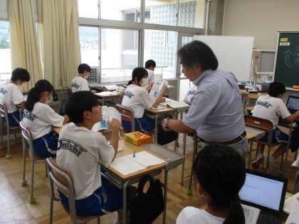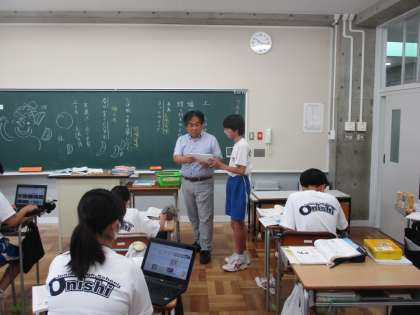 7月11日(木) 1年生(国語「比喩で広がる言葉の世界」)【進んで学ぶ子】 公開日 2024/07/11 更新日 2024/07/11 できごと 1年生の国語は比喩の学習でした。今日は、様々な比喩表現を使って詩づくりに取り組みました。個性や発想を生かしてその人ならではのいい作品ができあがっていました。 授業 1年