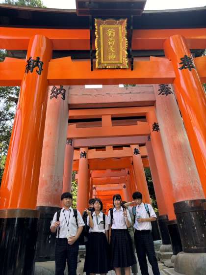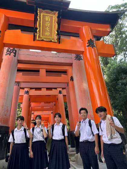 2つの班が伏見稲荷大社にやって来ました。千本鳥居あざやかです。