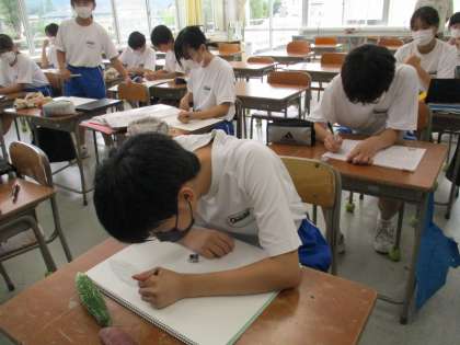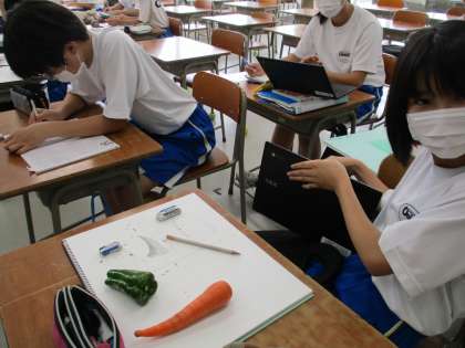 9月24日(火) 1年生(美術「静物画」)【進んで学ぶ子】 公開日 2024/09/26 更新日 2024/09/26 できごと 1年生は,野菜や果物をよく見て鉛筆で描いています。みんな鉛筆の使い方が上手です。次回はいよいよ色塗りに入ります。