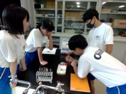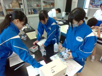 10月15日(火) 3年生(理科「電流が流れる水溶液」)【進んで学ぶ子】 公開日 2024/10/15 更新日 2024/10/15 できごと これまでに、金属(固体)に電流が流れることを学習しています。では、水溶液に電流は流れるのでしょうか。精製水、砂糖水、食塩水、エタノール水溶液、うすい水酸化ナトリウム水溶液、うすい塩酸、塩化銅水溶液の7つに電流が流れるか予想をして、実験していきます。 授業 3年