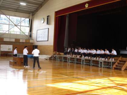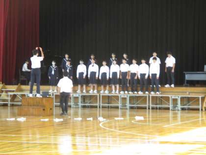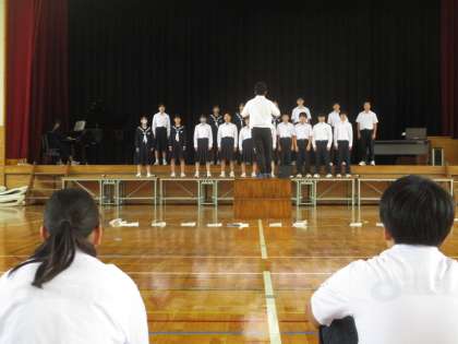 3年生の音楽は合唱の練習でした。今日は合唱コンクール本番に向けて、体育館で声の出具合や強弱等をチェックしながら練習しました。