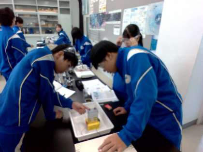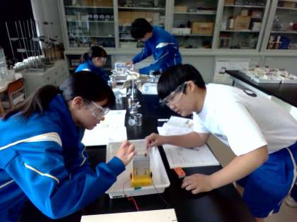10月21日(月) 3年生(理科「塩酸の電気分解」)【進んで学ぶ子】 公開日 2024/10/21 更新日 2024/10/21 できごと これまでに塩化銅水溶液の電気分解について学習してきました。同じ電解質水溶液の塩酸に電流を流すとどのような化学変化が起こるのでしょうか。塩化銅の実験を元に予想をして、実験に移ります。 授業 3年