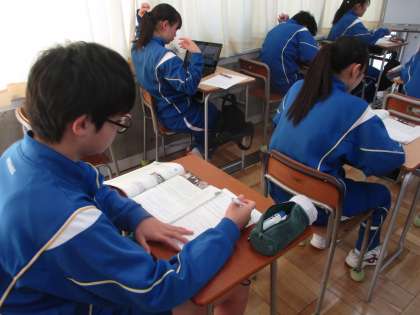 11月7日(木) 3年生(英語「Read & Think」)【進んで学ぶ子】 公開日 2024/11/07 更新日 2024/11/07 できごと 3年生の英語は読み物教材の学習でした。今日は、歴史的な出来事を写した写真についての英語の説明文を読んで、その内容について考える活動でした。 校長より 授業 3年