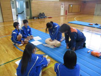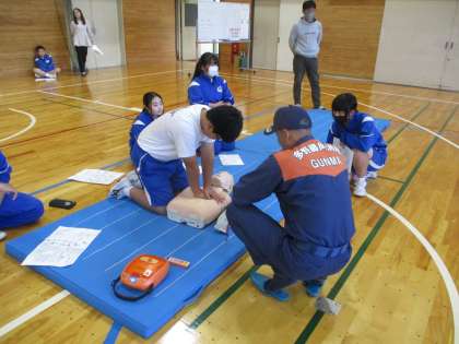 11月7日(木) 2年生(保健「心肺蘇生法講習会」)その3【進んで学ぶ子】 公開日 2024/11/07 更新日 2024/11/07 できごと 心臓マッサージは大変力のいる蘇生法で、隊員の方からも「もっと強く行ってください」と指示されていました。リズムを意識しなが、力一杯胸を圧迫する動作を繰り返していました。 校長より 授業 2年