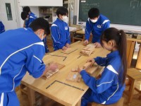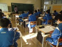 1年生の社会の学習では、先生からの発問とその答えをもとに、本時のめあてについて考えをまとめていく場面を見ていただきました。大勢の参観者の視線を感じ少し緊張気味でした。