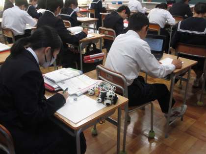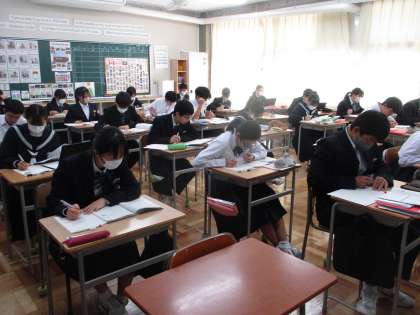 11月18日(月) 2年生(英語「単元の復習」)【進んで学ぶ子】 公開日 2024/11/18 更新日 2024/11/18 できごと 2年生の英語は期末テストに向けて、単元の復習を進めました。ワークやノートのまとめに取り組みながら学習したことを整理しました。 校長より 授業 2年