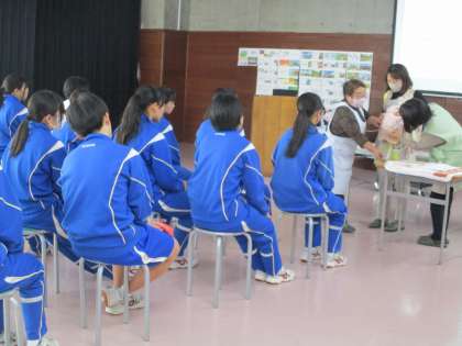 市の健やか未来部の出前講座として,助産師さんや保健師さんを講師に迎え,3年生が命の大切さについて学びました。驚異的な確率で生まれてきた私たちは生きていく力をもっていること,家族やまわりの人たちからの愛情を受けて育ってきていること,自らの命を守っていかなければならないこと,など,大切なお話がありました。