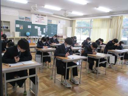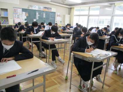 11月20日(水) 1・2年生(期末テスト2日目)【進んで学ぶ子】 公開日 2024/11/20 更新日 2024/11/20 できごと 1・2年生は昨日に続いて期末テストです。2日目は,理科,数学,技家,音楽の4教科です。最後まで集中して,学習の成果をしっかりと発揮できるよう期待します!