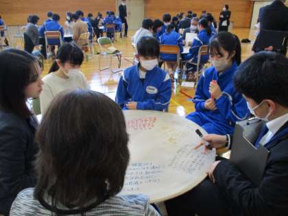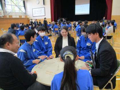 11月22日(金)鬼石中校区いじめ問題解決に向けた教育懇談会2 公開日 2024/11/25 更新日 2024/11/25 できごと 今年度のテーマは「正しいと思っていることをどう伝えるか」でした。自分が正しいと思ったことでも,伝え方によって相手を傷つけたり相手を追い込んでしまったりすることがあります。自分が正しいと思ったことを相手がいやな気持ちにならないように伝えることについて,7人前後の班で熟議をして考え,各班で行動目標を立てました。