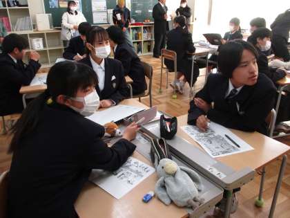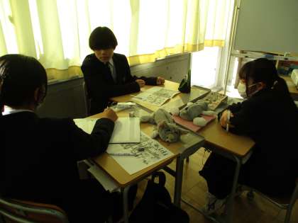 12月14日(土) 1年生(理科「力のはたらき」オープンスクール)【進んで学ぶ子】 公開日 2024/12/14 更新日 2024/12/14 できごと 今日はオープンスクールで、たくさんの保護者の方々来校され、授業参観していただきました。1年生の理科は力のはたらきの学習でした。今日は力はどのようなはたらきをするのか、絵を通して見えない力を見ながら、そのはたらきをグループで考え整理しました。 校長より 授業 1年