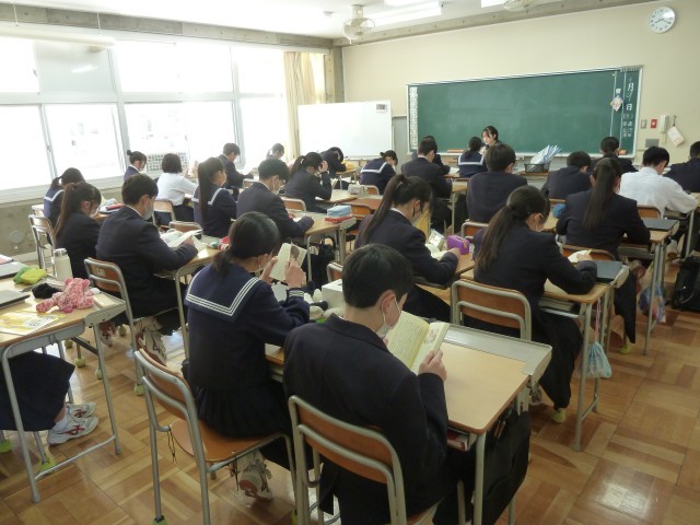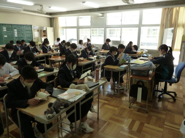 3年教室へ行ってみると、全員が集中して読書に取り組んでいました。自分たちで静かな空間を作っており、さすが3年生だと思いました。落ち着いた雰囲気で1日がスタートしています。