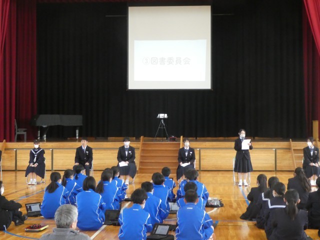 るよう、2、3年生が鬼石中学校生活や部活動について説明しました。