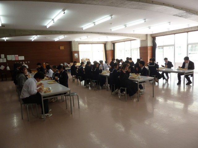 午前中にテストを頑張っていた3年生は、少しリラックスモードで給食を食べていました。「写真を撮っていいですか?」と聞くと、「いいですよ。」と元気よく答えてくれました。まだ午後にテストが残っていますが、きっとベストを尽くしてくれることと思います。