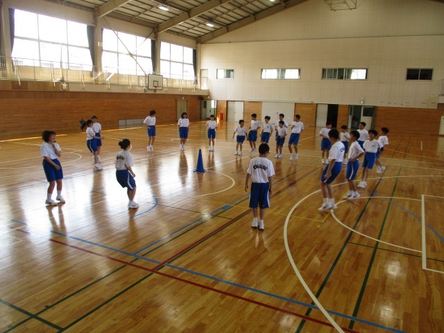 4月17日(木) 1年生(体育「フォークダンス」)【進んで学ぶ子・たくましい心身をもつ子】