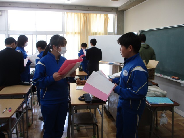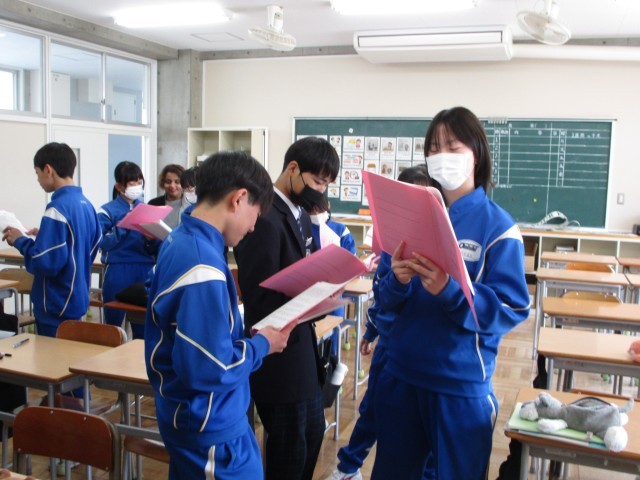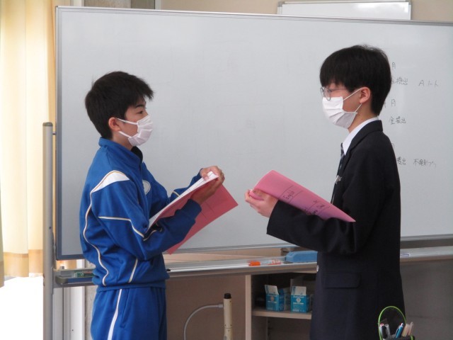 2年生の英語は1年生の学習事項の復習でした。今日は、1年生で学習した構文を駆使して、英語による即興的な会話を行いました。これまでに習った表現を使って粘り強く会話を継続していました。