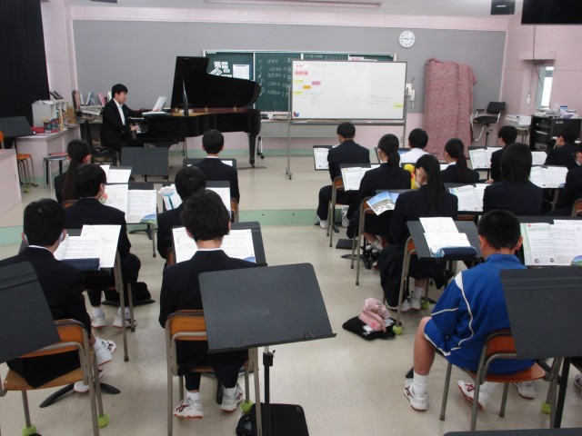 2年生の音楽は中田喜直の「夏の思い出」の学習でした。今日は、今日は歌詞から感受したことをもとに、情景を思い浮かべながら歌いました。