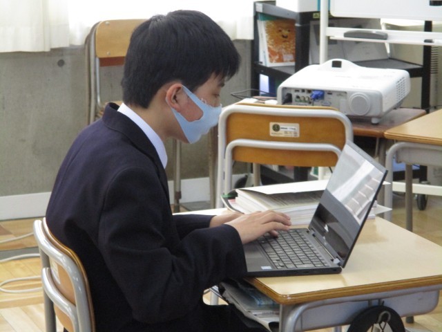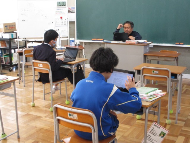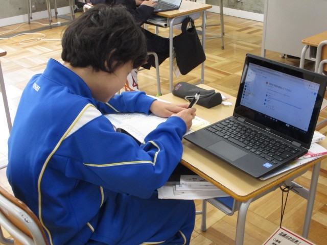 2年生の国語は少年の主張の作成でした。今日は、一台端末に打ち込んだ少年の主張のデータを先生に送信し、推敲を重ねた原稿を確認してもらいました。