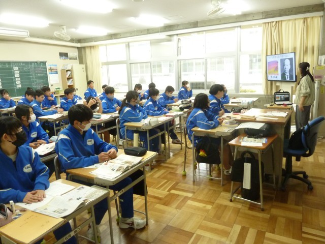 3年生の社会は歴史的分野の学習です。めあては「文化を通して大正時代がどんな時代だったのか表現しよう」です。映像などを活用しながら大正時代の文化の様子を知った後、大正時代がどのような時代であったのか説明しようと頑張る3年生でした。
