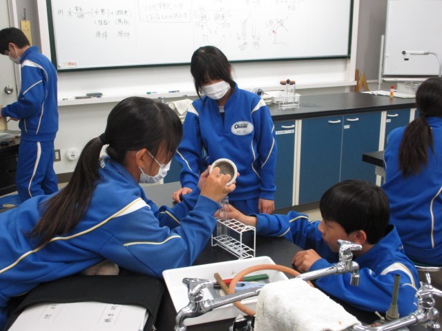2年生の理科は物質同士の化学変化の学習でした。今日は鉄と硫黄の加熱実験を通して、どのような化学変化が起こるのかを確かめました。
