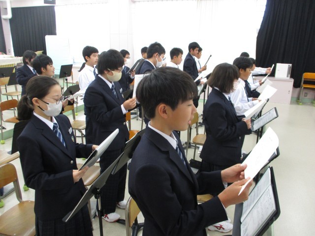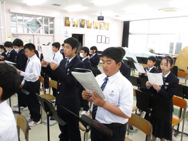 2年生の音楽は、今月行われる高原学校に向けて、実施中に歌う歌を練習しました。