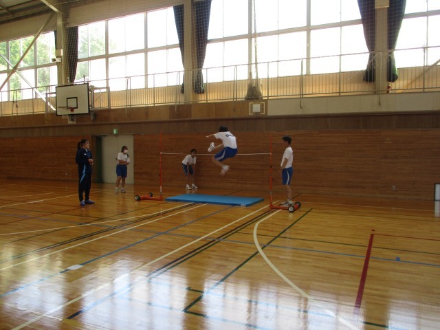 3年生の体育は走り高跳びでした。今日は、高く跳ぶためのポイントとして助走や腕の振り上げに気をつけながら跳ぶ練習をしました。