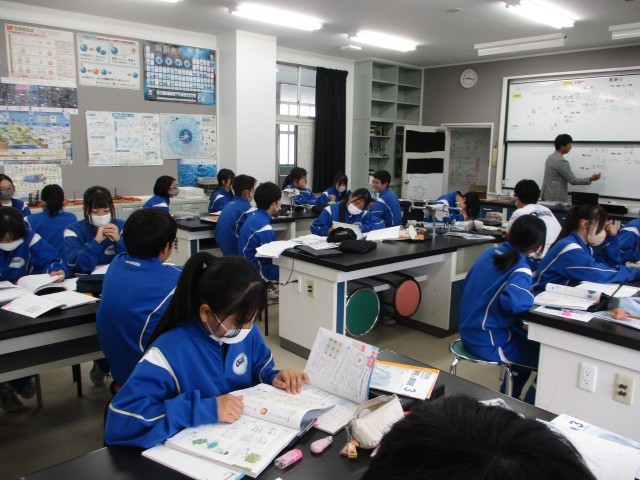 3年生の理科はイオンと原子のなり立ちの学習でした。今日はこれまでの学習を振り返り、単元で学んだことを問題を解きながらまとめました。