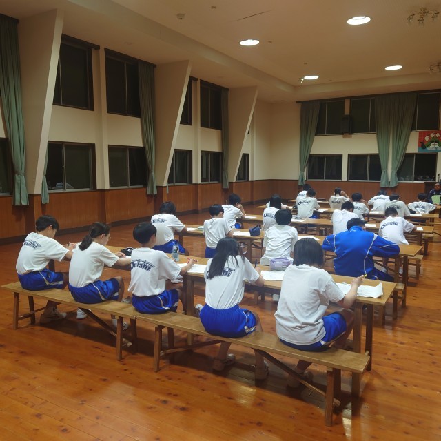 5月22日(木) 1年生(高原学校 学年集会)【進んで学ぶ子・たくましい心身をもつ子】 公開日 2025/05/23 更新日 2025/05/23 1年高原学校 9時からは1日の反省の学年集会です。静かに集中して振り返りを書いたり、話を聞くことができました。 行事 1年