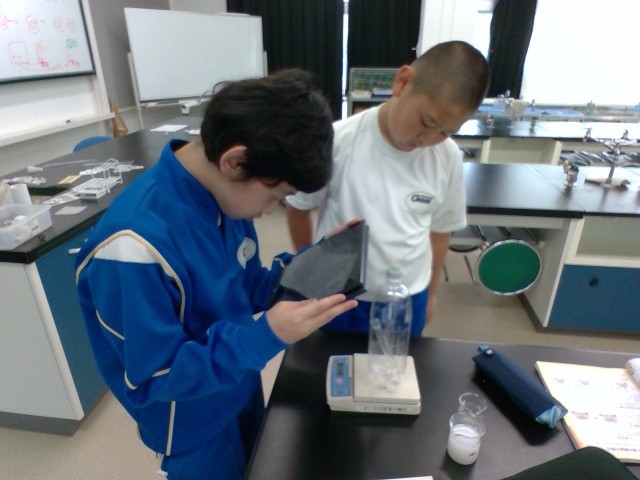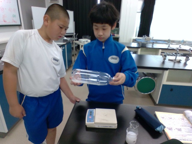 5月23日(金) 2年生(理科「化学変化と物質の質量」)【進んで学ぶ子】 公開日 2025/05/23 更新日 2025/05/23 できごと これまでに、酸化や還元を学習してきました。今日は、化学変化が起こる前後で物質の質量はどうなるのかを実験で確かめました。沈殿ができる反応と、気体が発生する反応について考えることができました。どうやら化学変化の前後で質量は変わらなそうです。