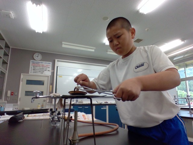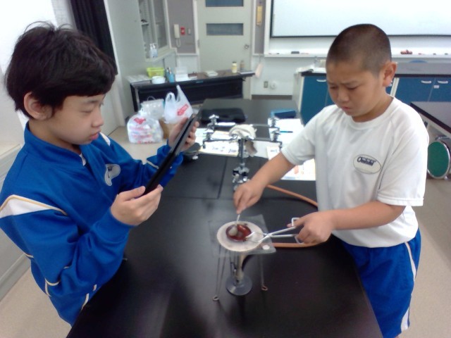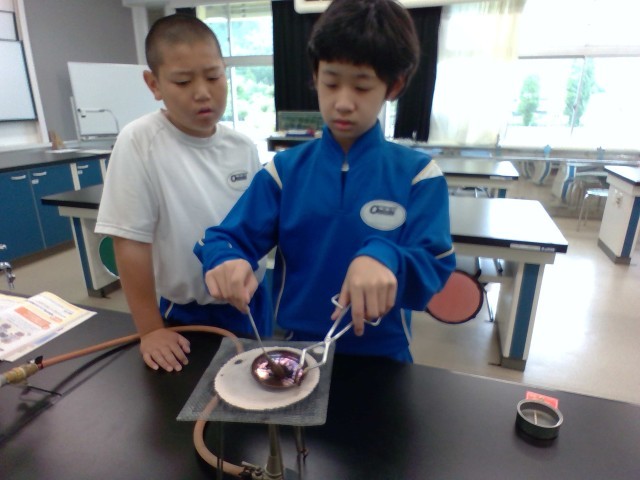 5月26日(月) 2年生(理科「金属を熱したときの質量の変化」)【進んで学ぶ子】 公開日 2025/05/26 更新日 2025/05/26 できごと これまで、スチールウールを燃やすと結びついた酸素の量だけ質量が増えることを学びました。では、決まった量の金属と結びつく酸素の質量には限りがあるのでしょうか。銅を加熱して調べていきます。