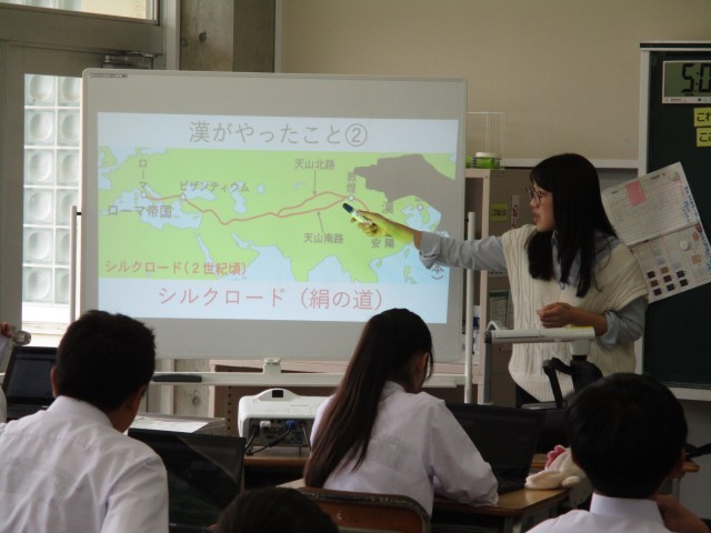 1年生の社会は世界史の学習でした。今日は、文明の誕生と発展について中国の歴史を辿りながら、その誕生や発展について考えました。