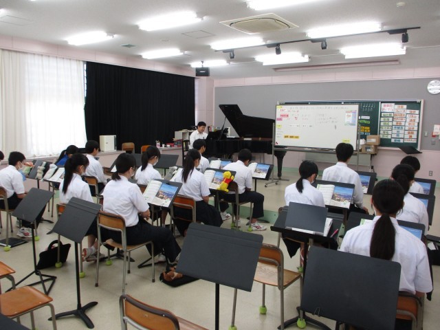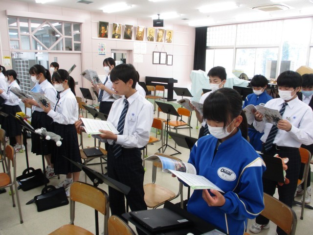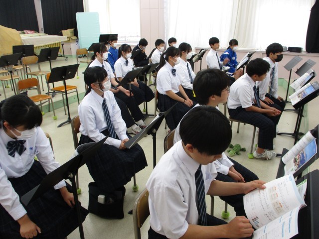 2年生の音楽はイタリア歌曲(カンツォーネ)の学習でした。今日は有名なサンタ・ルチアを歌いました。イタリア語の歌曲の特徴や歌詞の意味を考えながら、歌うときの表現を工夫しました。