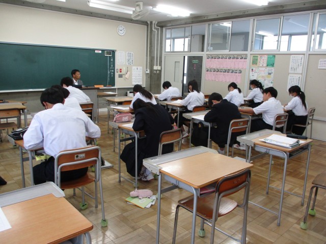 2年生の数学は、中間テストに臨んでいました。最後まで粘り強く問題を解いていました。
