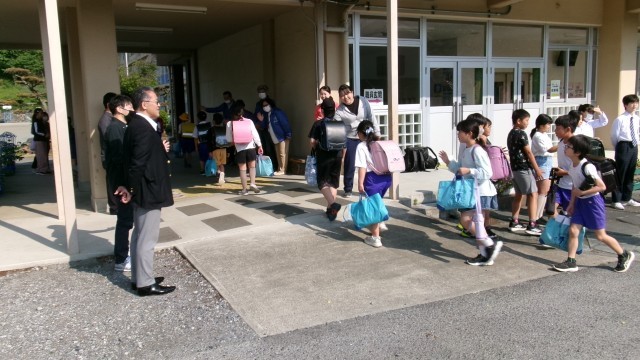 今日は小中あいさつ運動が小学校で行われました。小中学生、PTAの皆さん、地域の皆さん、学校職員で元気にあいさつ運動しました。大変気持ちの良い一日のスタートとなりました。