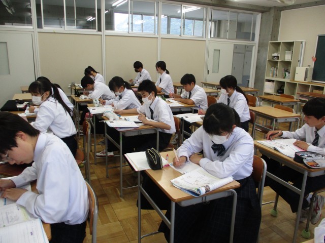 2年生の英語は気持ちを伝える表現の学習でした。今日は、場面設定に応じて、気持ちを伝える会話文を作成し、伝え合いました。