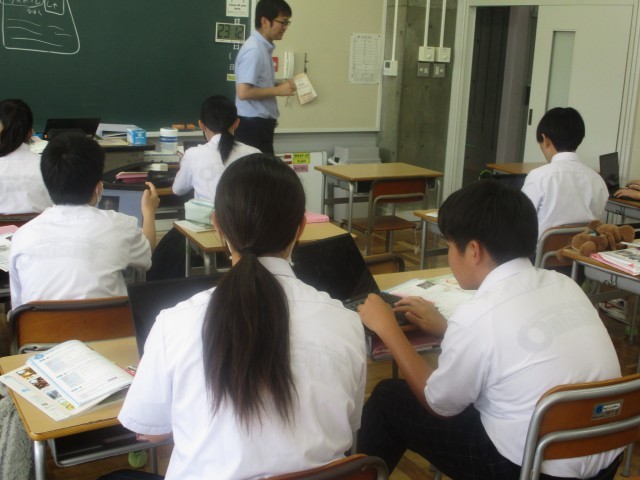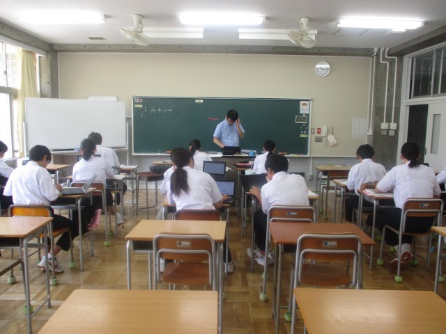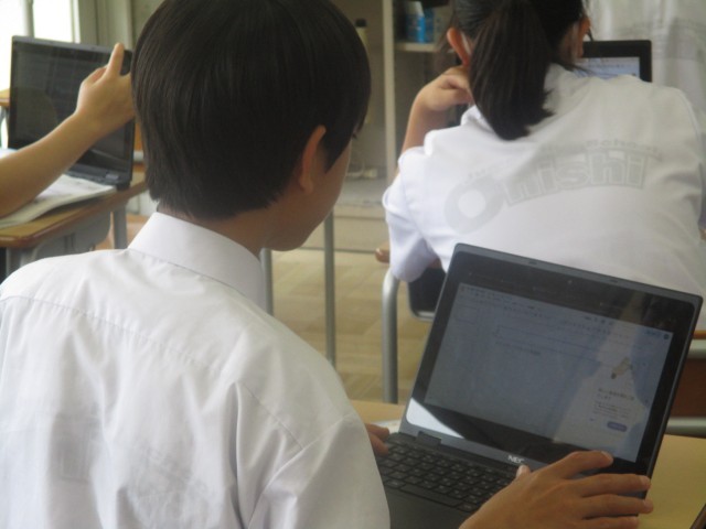 2年生の英語は話すことに特化したプロジェクト活動でした。今日は、自分の好きな祭りのことについて英語で発表できるように、情報を整理しまとめました。