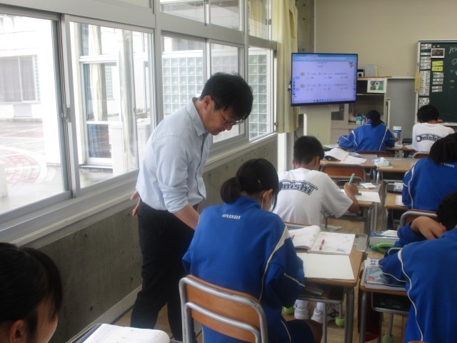 3年生の数学は平方根の学習でした。今日は、根号のついた数を変形して近似値を求める問題に取り組みました。