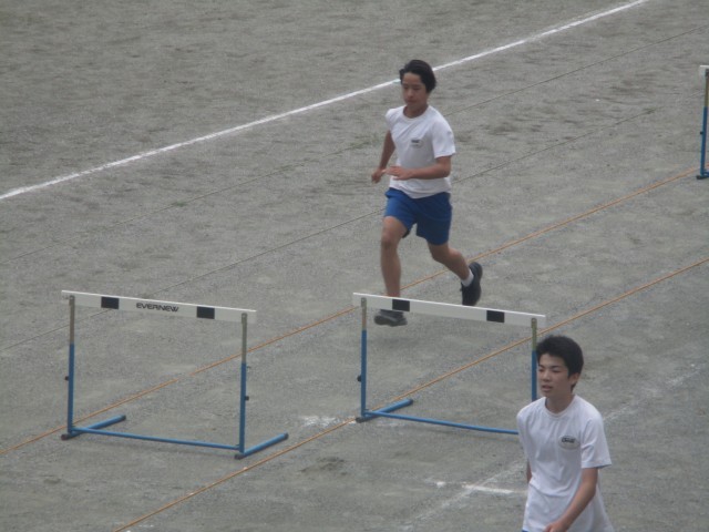 1年生の体育は陸上競技会に向けての練習でした。本番間近ということもあり、練習にも熱が入ります。まわりからも「がんば!」とエールがたくさんとんでいました。